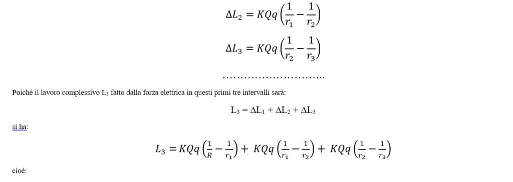 Poiché il lavoro complessivo L3 fatto dalla forza elettrica in questi primi tre intervalli sarà: