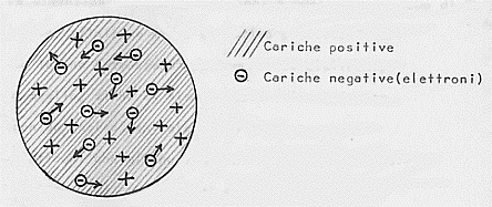 Possiamo ora riprendere le questioni relative all’atomo. Sul finire dell’Ottocento il britannico J.J. Thomson scoprì una piccolissima particella che doveva essere tra i costituenti dell’atomo, l’elettrone. I problemi si complicarono perché l’elettrone mostrava di avere una carica elettrica negativa mentre la materia di cui l’elettrone è parte non ha proprietà elettriche, ma è neutra. Ciò portò a concludere che nella materia dovevano esservi anche particelle con carica elettrica negativa di modo che, nel complesso, la materia fosse, come è, priva di carica. Si iniziò allora a pensare che la materia fosse costituita da atomi neutri ma formati da particelle negative e da una carica positiva diffusa nell’intero atomo, visto che non i trovavano particelle cariche positivamente. Ancora J. J. Thomson si mise a studiare il problema e nel 1904 portò a compimento il suo modello di atomo. Tale modello atomico era pensato come costituito da una carica elettrica positiva distribuita uniformemente in una sfera piccolissima, neutralizzata da un conveniente numero di elettroni immersi nella stessa sfera e liberi di muoversi in essa: