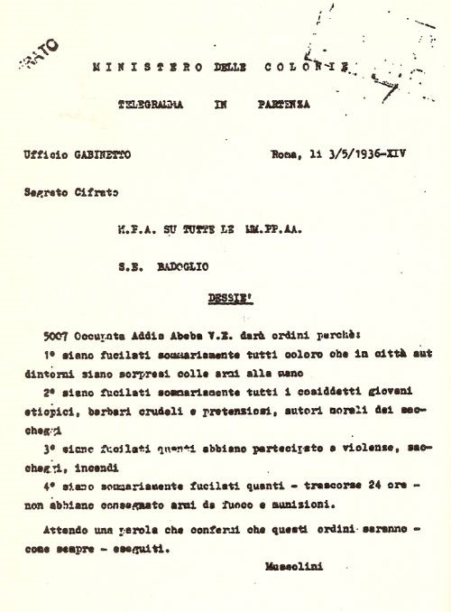 Di seguito alcuni dei telegrammi con i quali Mussolini in persona ordinava le peggiori atrocità: