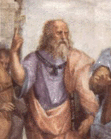 Particolare della Scuola d’Atene di Raffaello in cui Platone è raffigurato da Leonardo