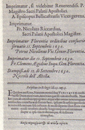 Se l’autorità di questo laico non basta vi è quella del teologo Niccolò Riccardi (Padre Mostro), che godeva della fiducia del Papa, tanto che da lui dipendeva l’imprimatur definitivo al Dialogo. Padre Mostro, nel 1631, scrive all’Inquisitore di Firenze(63):