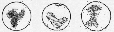 Disegni di Huygens della superficie di Marte. Il primo è del 28 novembre 1659; il secondo del 13 agosto 1672 (ore 22 e 30); il terzo del 17 maggio 1683 (ore 22 e 03)