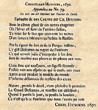 Huygens fu molto legato a Descartes e la cosa è testimoniata dai versi che egli scrisse nel 1650, in occasione della sua morte(9).