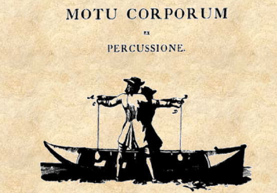 Non è ben chiaro da dove provenga questa illustrazione che si trova nella Prima Pagina di questo lavoro di Huygens. Vi è una barca con una persona che sostiene delle masse e vi è una persona sulla riva che fa lo stesso. Se si ricorda la Cena delle Ceneri di Giordano Bruno, con un’esperienza di questo tipo egli riesce a mostrare la relatività dinamica del movimento.