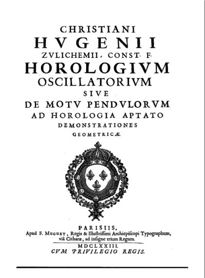 Nel 1673 vide la luce forse la più importante opera di Huygens, l’Horologium Oscillatorium in cui si riprendevano le cose sviluppate nell’Horologium del 1658 ma con un’ampiezza teorica di grandissimo respiro che investiva vari problemi di meccanica connessi con masse in oscillazione, con la