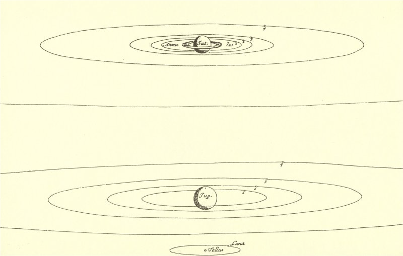 (10) Dopo aver scoperto Titano, Huygens non cercò altri satelliti per un suo strano preconcetto (strano per un uomo come lui che non aveva mai fatto concessioni a numerologie o misticismi vari). Egli era convinto che il numero dei satelliti non poteva essere superiore al numero dei pianeti principali e che, dopo la scoperta di Titano, il sistema solare contava sei pianeti e sei satelliti e quindi era completo.