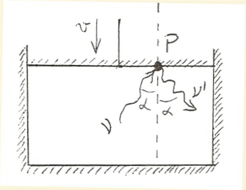 C’è ora da osservare che, a seguito dell’effetto Doppler, la radiazione che abbiamo considerato, dopo aver inciso su S, sarà uscita da quell’intervallo di frequenze (ve ne sarà invece una parte che, sempre per effetto Doppler, partendo da un intervallo di frequenze comprese tra ν’ e v’ + dν’, entrerà tra ν e ν + dν a causa della riflessione).