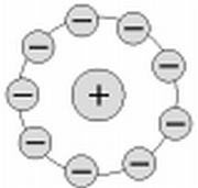 secondo il quale un numero elevato di corpuscoli che ruotano rapidamente, si distribuiscono nelle seguenti configurazioni. I corpuscoli formano una serie di anelli: i corpuscoli di ciascun anello giacciono in un piano posto perpendicolarmente all’asse di rotazione e il loro numero diminuisce al diminuire del raggio dell’anello. Se i corpuscoli si possono muovere perpendicolarmente al piano dell’orbita, gli anelli saranno disposti in piani diversi, in modo tale che la repulsione tra gli anelli sia bilanciata dall’ attrazione esercitata dalla sfera positiva nella quale sono immersi. Si ha così, per prima cosa, una sfera uniforme di carica positiva, e, all’interno di questa, un certo numero di corpuscoli distribuiti in una serie di anelli paralleli, dove il numero dei corpuscoli presenti in ciascun anello varia da un anello all’altro; ogni corpuscolo viaggia a velocità elevata lungo la circonferenza in cui è situato e gli anelli sono disposti in modo tale che quelli che contengono un numero elevato di corpuscoli sono vicini alla superficie della sfera, mentre quelli che ne contengono un numero minore sono più interni.
