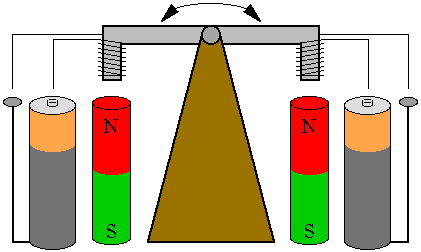 Siamo ora come nel primo modo visto, con la differenza che il magnete permanente è sostituito da un elettromagnete alimentato da una pila.