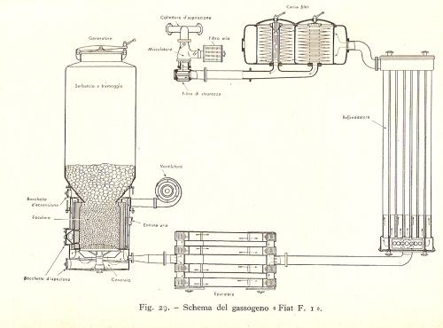 Il problema dei combustibili veniva sempre più dibattuto ma non si usciva da quanto già detto: non si riusciva a risolvere il problema con l’aggravante gigantesca che l’Italia si preparava alla guerra in una situazione disastrosa di uno degli elementi fondamentali per sostenere un conflitto: i carburanti. Il governo emanò direttive per utilizzare combustibili nazionali specificando zona per zona quale fosse il combustibile più adeguato. Lo stesso Mussolini spinse per l’alcool da barbabietole e se Mussolini diceva qualcosa si muoveva anche se il problema restava: la produzione italiana di barbabietole non era sufficiente (si pensò allora ad altro, al sorgo e alla fermentazione del legno, ma con scarso successo; si lavorò anche sulle ligniti e sulle rocce asfaltiche ma con risultati vicini allo zero). Lo stesso gassogeno a carbone di legna che nelle previsioni avrebbe dovuto contribuire per il 4,2%, si mantenne molto al di sotto di tale previsione (mediamente un poco più di 2000 tonnellate di benzina equivalente l’anno in confronto alle 30000 preventivate). Questa situazione è così commentata da Maiocchi (2003):