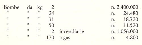 Le esigenze di gas dello Stato Maggiore dell’Aeronautica per far bene le operazioni di Polizia con 50 missioni di 240 bombardieri erano quelle riportate nella tabella seguente: