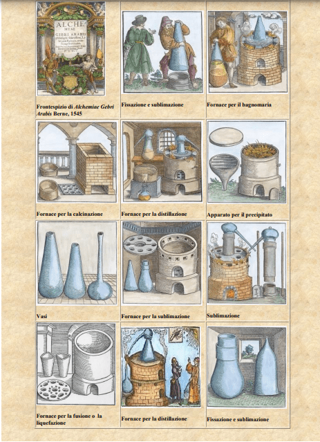 Di seguito mi occuperò propriamente di molti e vari aspetti dell’alchimia non fornendo i dettagli dei preparati chimici che si ottenevano nei differenti processi. Alla fine di queste discussioni darò un quadro sintetico delle elaborazioni chimiche che si sono ottenute nelle pratiche alchimistiche e che, in qualche modo, furono il lascito dell’alchimia alla chimica.