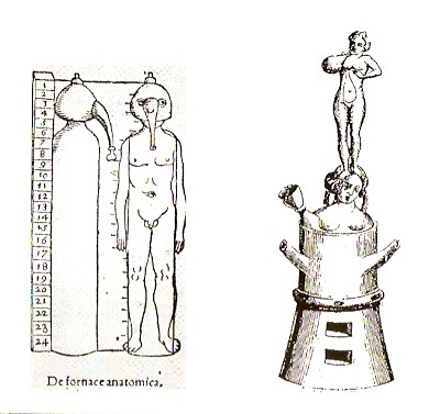 Alla sinistra è rappresentato un forno antropomorfo (da: G. Dorn, Aurora, Basilea 1577). Alla destra un forno a forma di generatrice o matriz (da: Andreas Libavius, Alchimi, Francfort 1606). Da alcuni alchimisti cristiani l’Uomo venne considerato per analogia il “Forno filosofico” in cui si compie l’elaborazione del pensiero capace di scoprire le capacità di trasmutazione che conducono alla purezza.