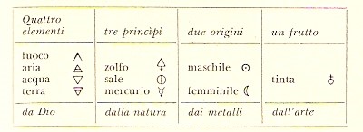 Riporto di seguito l’elenco di vari simboli alchemici perché indicativamente aiutino a capire alcune immagini: