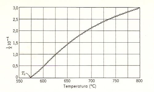 curva mostra la validità della legge di Curie.