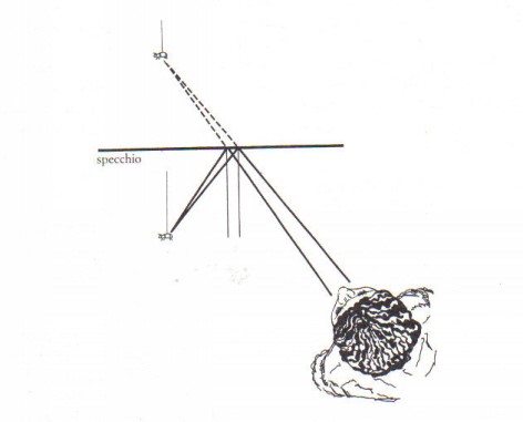“i corpi esterni [sono] costituiti da un complesso di punti ciascuno dei quali emette raggi in tutte le direzioni, raggi infiniti ed infinitamente estesi finché non incontrano un ostacolo. Quindi un punto isolato è come una stella che emette raggi in tutte le direzioni; se di fronte ad essa si trova un occhio, in esso penetreranno tutti i raggi che costituiscono un cono col vertice nella stella e con la base nella pupilla. Essi si rifrangono sia attraverso la cornea, sia attraverso le parti interne dell’occhio andando a formare un nuovo cono che ha per base la pupilla e per vertice un punto della retina”.