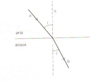 Nel passaggio da un mezzo più denso ad uno meno denso il raggio rifratto si allontana dalla perpendicolare (r<i). Occorre comunque osservare che vi è sempre un raggio riflesso che si accompagna a quello rifratto. Per un dato angolo di incidenza (angolo limite) il raggio non passa più nell’altro mezzo ma resta intrappolato nel primo: è il fenomeno della riflessione totale.
