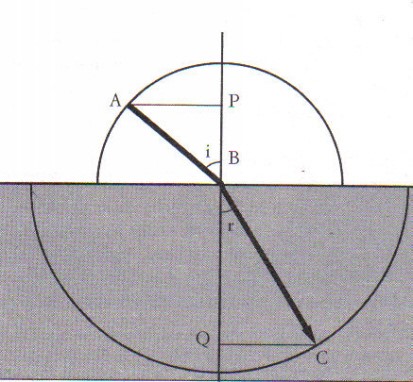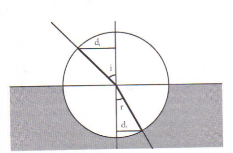 dove di e dr sono i due segmenti di figura che hanno una precisa relazione con, rispettivamente, il seno dell’angolo di incidenza e quello dell’angolo di rifrazione, mentre n è una costante che conosciamo oggi come indice di rifrazione relativo ai due mezzi (rappresentati dai subindici 1 e 2). Poiché, con linguaggio di oggi, di = cosec r e dr = cosec i, la relazione vista diventa: