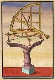 per l’osservazione del cielo. Con le rendita assicuratagli dal re, Thyco, oltre a circondarsi di una trentina di collaboratori, fece costruire apparecchiature avanzatissime e di grandi dimensioni, fermo restando che le osservazioni avvenivano ad occhio nudo. Non è che vi fossero strumenti nuovi dal punto di vista dei principi. Erano appunto le grandi dimensioni di essi che riducevano di molto gli errori nelle osservazioni (una piccola deviazione di un millimetro nella lettura di uno strumento si traduceva in errori di vari minuti nella posizione dell’oggetto osservato). Egli si dotò di un quadrante che aveva un raggio di 6 metri, di una sfera armillare del diametro di 5,5 metri, di un sestante di quasi due metri di raggio,… Altra novità era relativa al fatto che gli strumenti erano fissati al luogo dove erano situati, allo stesso modo che la sedia di marmo che serviva per l’osservazione. Anche della stabilità si preoccupò Tycho ed in questo senso vari strumenti li sistemò in sotterranei (come l’osservatorio di Stjerneborg, costruito successivamente da Thyco). L’ostacolo maggiore era la misura del tempo ed egli si affidò a clessidre a mercurio: il peso del mercurio che usciva da un piccolo foro gli forniva la misura del tempo. Utilizzò il piombo in polvere ma questo elemento lo deluse. Fece costruire anche grandi orologi uno dei quali marcava anche i secondi con la sua ruota principale che aveva un metro di diametro e 1200 denti; il problema era però la mancanza della conoscenza delle proprietà del pendolo come regolatore del moto (a questo proposito sarà fondamentale il contributo di Galileo ed Huygens). L’osservatorio di Uraniborg fu terminato nel 1580 ed in esso Thyco