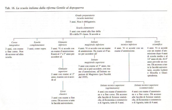 Fonte: Giovanni Genovesi – Storia della scuola in Italia dal Settecento ad oggi – Laterza 2000.