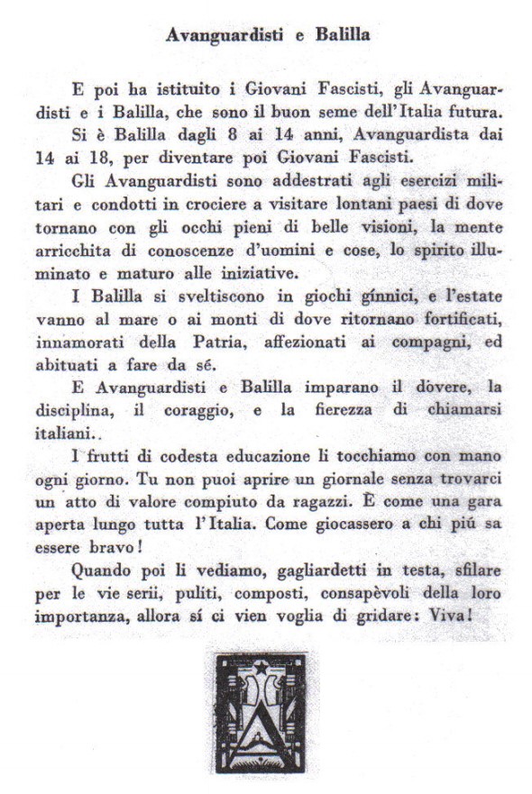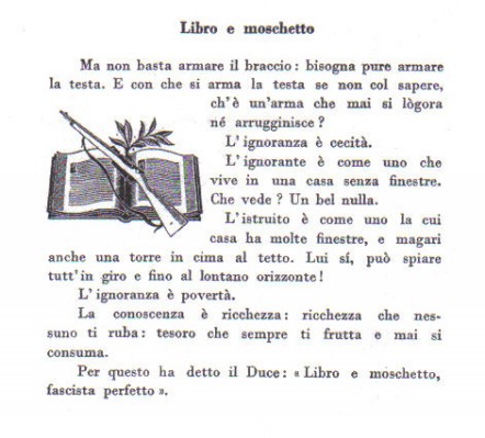 Così si istituiscono le scuole di lavoro perché si ha bisogno di mano d’opera per l’industria e per l’agricoltura; si rendono più facili gli esami e gli stessi corsi del ginnasio-liceo perché si ha necessità di farvi adire con successo l’aristocrazia fascista che ha meriti più di braccio che di testa; si accentua, in maniera brutale e poliziesca, specie a partire da De Vecchi, l’autoritarismo di insegnanti, direttori e presidi che, ognuno per il suo ruolo, è capo dei suoi sottoposti non per ragioni culturali ma di disciplina, poliziesche e governative; si fa della scuola un luogo che non deve essere più palestra dell’intelligenza, ma soprattutto di contagio emotivo di un’ideologia dominante, indiscutibile e a cui tutti, nessuno escluso, debbono soggiacere perché si ha bisogno di rinforzare il mito del capo. Tutto questo ribadisce l’ipotesi che il fascismo non ha una sua scuola, perché non ha un’idea di scuola. La prende in prestito da Gentile, ma non sa sfruttarla al meglio per i suoi fini perché, sostanzialmente, non la capisce.