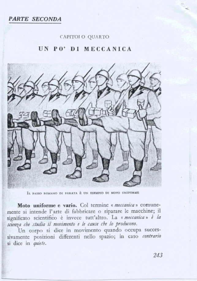 Alla prima domanda una qualche risposta, rozza ed intrisa di prosopopea mista ad ignoranza, venne da L. Talamo un non meglio identificato “scienziato” che scrisse Gli insegnamenti, i programmi, gli orarì: fisica (in Ministero dell’Educazione Nazionale, Dalla riforma Gentile alla Carta della Scuola, Firenze 1941). Dice il nostro [9]:
