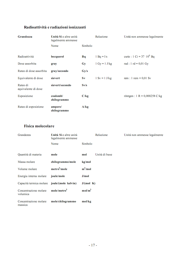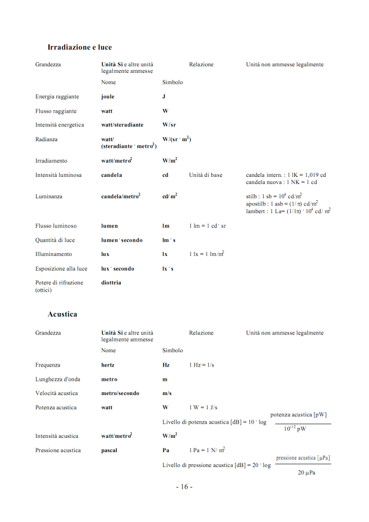 • Tempo – minuto, ora (h), giorno (g), anno (a)