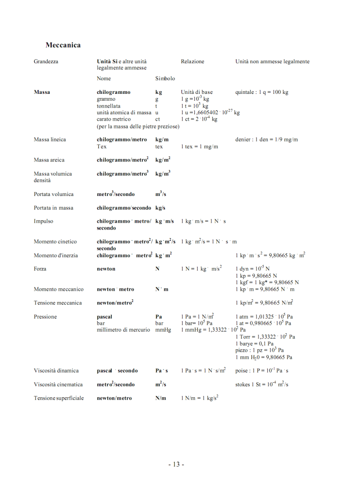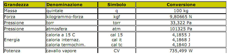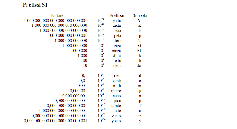 | MASSA | kilogrammo (kg) | massa del cilindro prototipo di platino-iridio conservato presso il Bureau International des Poids et Mesures di Sèvres (Parigi). | [M] |