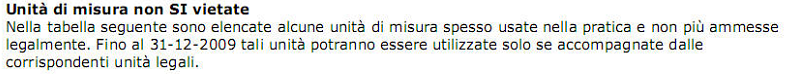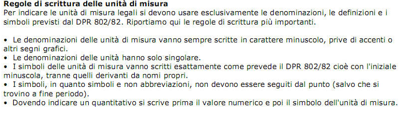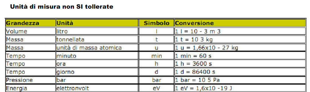Le unità SI permesse sono quelle delle tabelle precedenti (si osservi che l’Unità di Massa Atomica o AMU non fa parte del sistema SI ma è tutta via ammessa dalla maggior parte delle normative internazionali, anche se, per il momento, resta il kilogrammo campione l’unità di massa SI).
