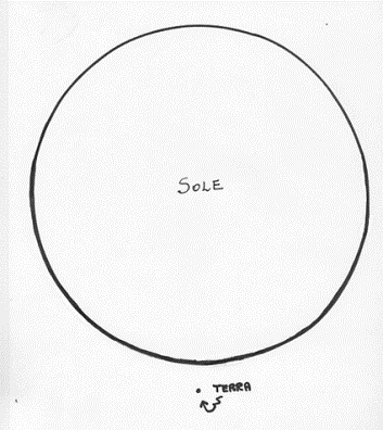Ebbene niente di più “falso”: in realtà è il Sole che ruota intorno alla Terra. Non rimanete atterriti da quanto sto dicendo, semplicemente pensate che: non c’è niente da fare, guardando dalla Terra è il Sole che comincia ad alzarsi dall’orizzonte, ci passa sulla testa e di nuovo si riabbassa sull’orizzonte. E poi anche il linguaggio che usiamo dà ragione a questo modo di essere delle cose: “il Sole sorge”, “il Sole tramonta”, … E’ quindi il Sole il soggetto che si muove, mentre la Terra è passiva, non agisce in alcun modo.