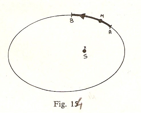 E’ noto che tutti i pianeti descrivono intorno al Sole orbite ellittiche (con piccola eccentricità, a parte Plutone), per cui guardando dal Sole per un periodo pari, ad esempio, ad un mese osserveremmo Marte descrivere l’arco di ellisse AB riportato in fig. 14.