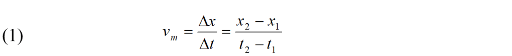 La particella in considerazione si trovi nella posizione x1 al tempo t1 e nella posizione x2 al tempo t2. La particella avrà subito uno spostamento che indichiamo con Δx = x2 – x1 in un tempo complessivo che indichiamo Δt = t2 – t1. La velocità media della particella sarà data da: