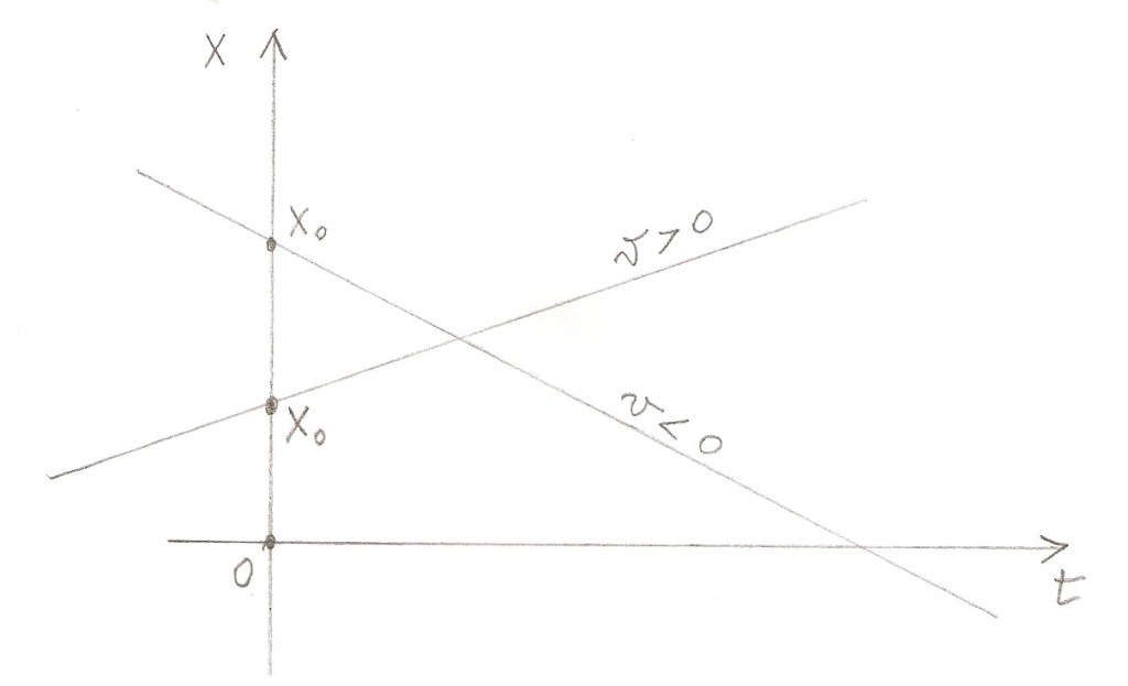che, come si vede, è l’equazione di una retta la cui inclinazione varia a seconda se il coefficiente angolare v0 è positivo o negativo, come mostrato in figura seguente: