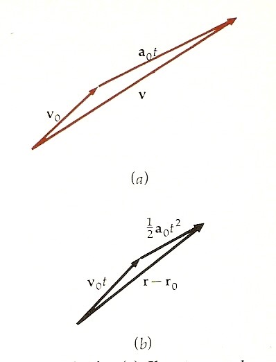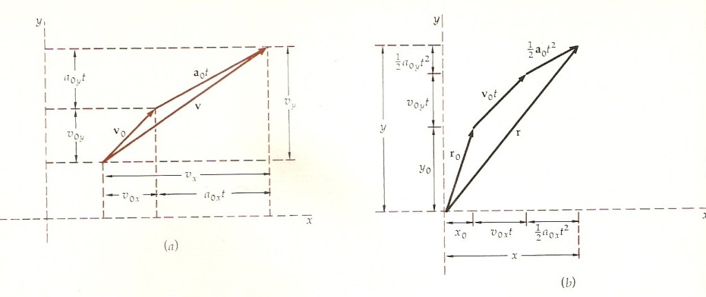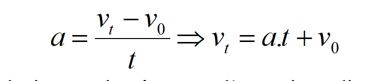 E’ questo un moto con accelerazione a costante (come il caso di oggetti in caduta libera). Considerando anche qui l’origine del moto a t0 = 0 e chiamando con vt la velocità al tempo t e con v0 la velocità al tempo 0, abbiamo: