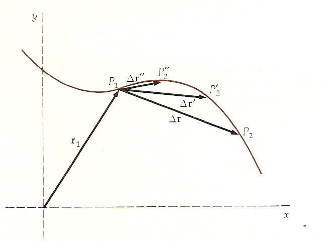 e questo limite è la derivata dello spazio percorso rispetto al tempo. Se ora si torna alla figura precedente si trova che questa derivata geometricamente corrisponde alla tangente alla traiettoria nel punto P1 (che è anche la tangente trigonometrica dell’angolo formato dalla retta ora detta con l’asse delle ascisse).