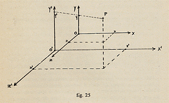 Riportiamo in fig. 26 i due riferimenti nell’istante t = 0 (o t’ = 0), quando, come abbiamo detto, le origini coincidono (per rendere più chiara la figura gli assi dei due riferimenti, che dovrebbero coincidere, sono stati disegnati un poco spostati l’uno rispetto all’altro).