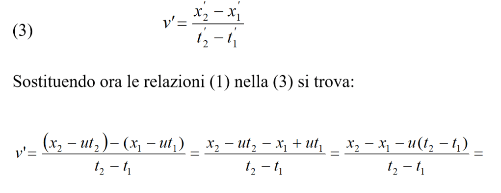 e questa è l’equazione di trasformazione per le velocità che trasforma un moto uniforme in un altro moto uniforme.