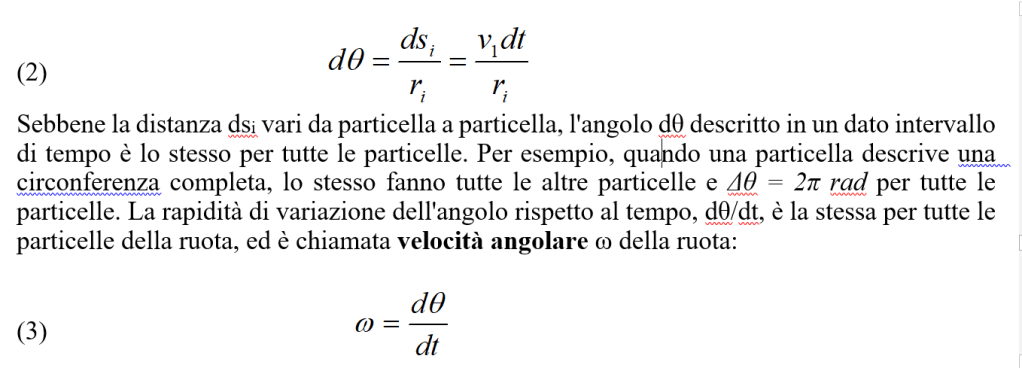 dove vi è la velocità della particella. L’angolo descritto dalla congiungente il centro e la particella, espresso in radianti, è uguale al rapporto fra la distanza e il raggio ri: