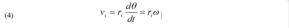 Dall’equazione (2) risulta che la velocità della particella i-esima è legata al suo raggio ri e alla velocità angolare della ruota dalla relazione:
