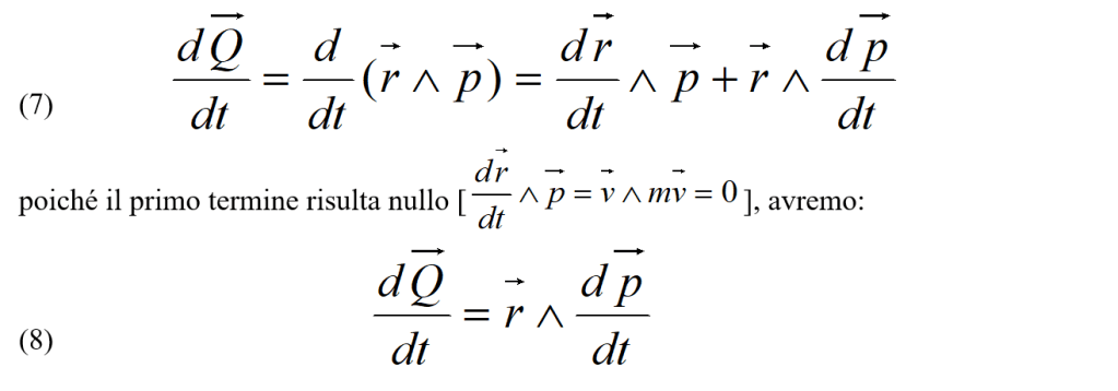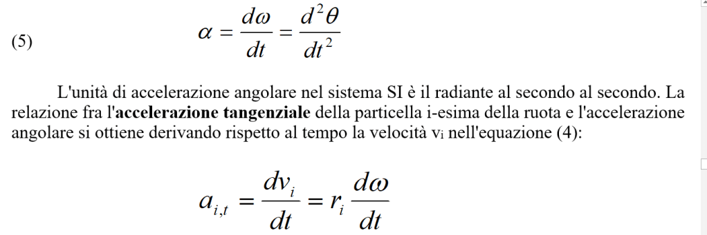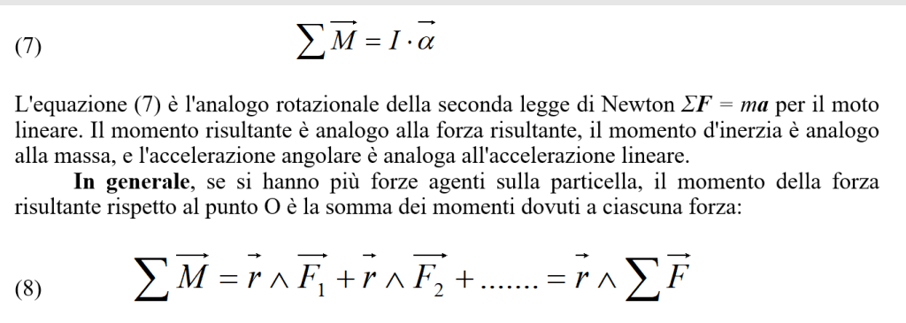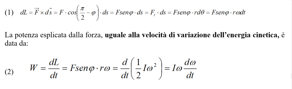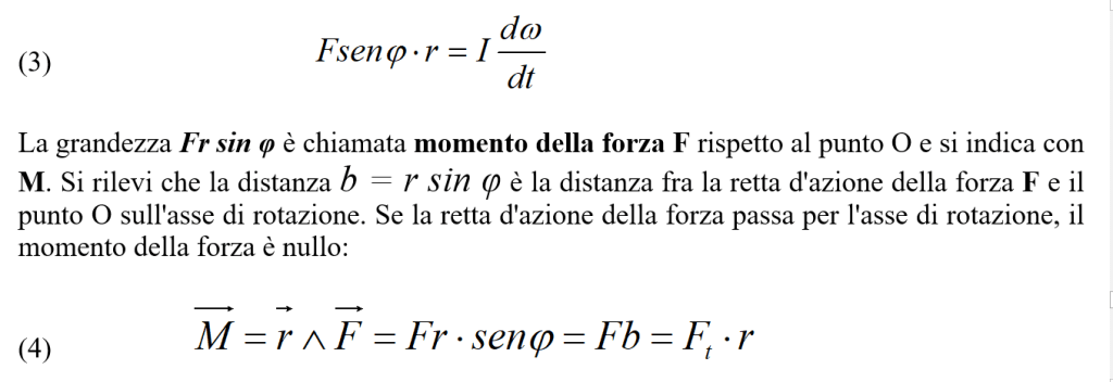 dove dω/dt è l’accelerazione angolare ed I è il momento d’inerzia. La (4) si può anche scrivere nel modo già visto:
