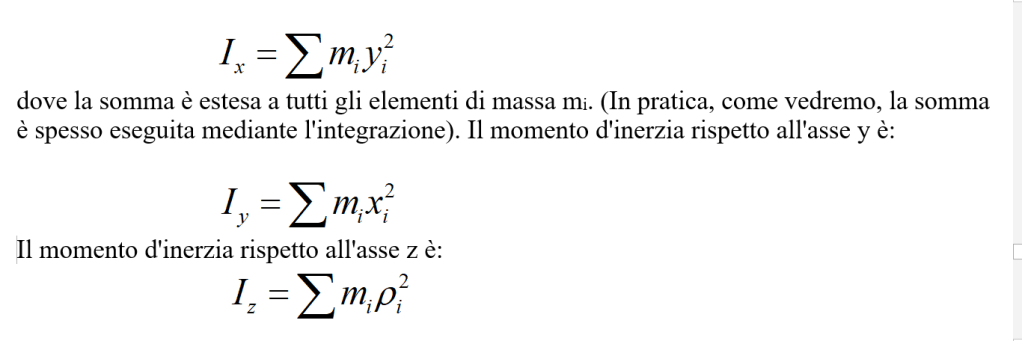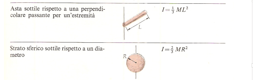 Di seguito riporto i momenti d’inerzia di corpi uniformi di varie forme.
