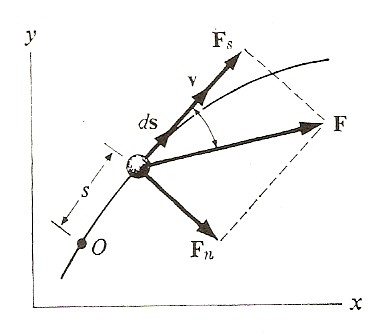 La componente Fn , perpendicolare alla velocità v, è una forza centripeta ed ha la funzione di variare la direzione della velocità mentre la componente Fs fa variare il modulo della velocità.