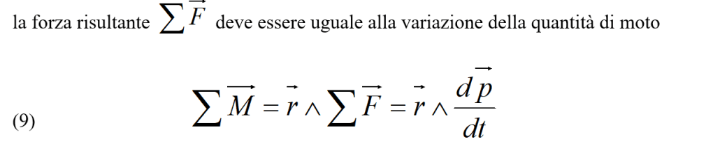 2 – Il momento della forza risultante dei momenti delle forze esterne (o, più semplicemente, il momento delle forze esterne) rispetto a qualunque punto dev’essere nullo: ΣM = 0