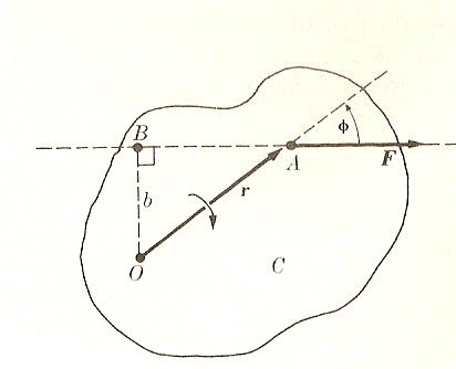 Il momento di una forza è uguale al prodotto della forza per il braccio della forza che è la distanza b = r sin φ. Questo momento è diretto perpendicolarmente al piano formato da F ed r.