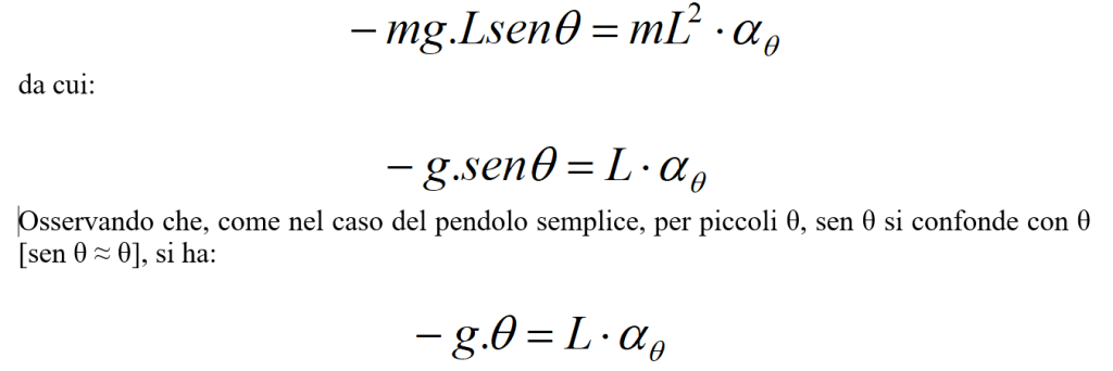Quindi il pendolo composto si muove di moto armonico semplice e, sempre nell’ipotesi sen θ ≈ θ, si ha: