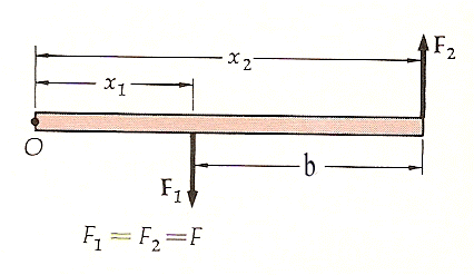 dove F è il modulo di ciascuna forza e b = x2 – xl è la distanza fra di esse. Questo risultato non dipende dalla scelta del punto O e il momento prodotto da una coppia è lo stesso rispetto a tutti i punti dello spazio.