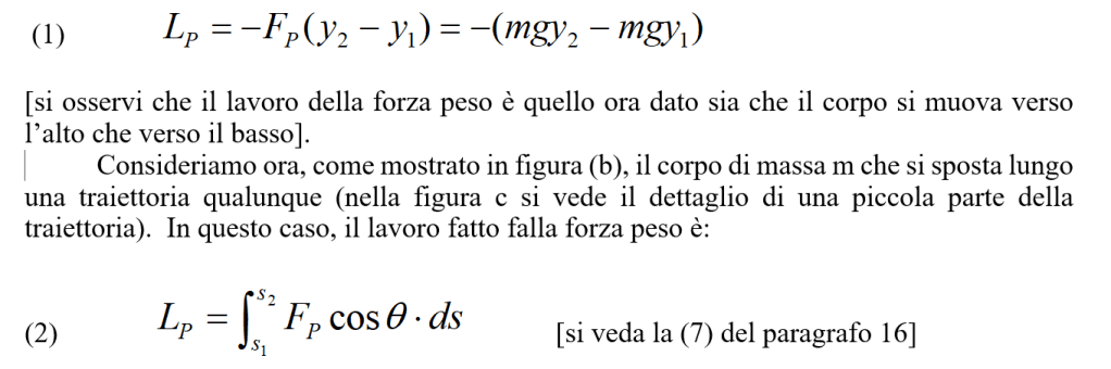 e si vede facilmente che questo risultato è identico alla relazione (1), cioè a quello trovato per un moto verticale. Ciò vuol dire che il lavoro fatto dipende solo dalle quote (posizioni) iniziali e finali, indipendentemente dalla traiettoria.