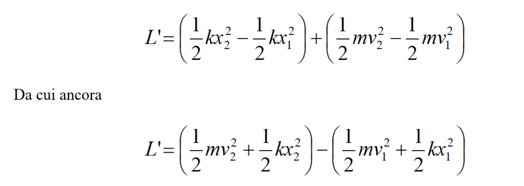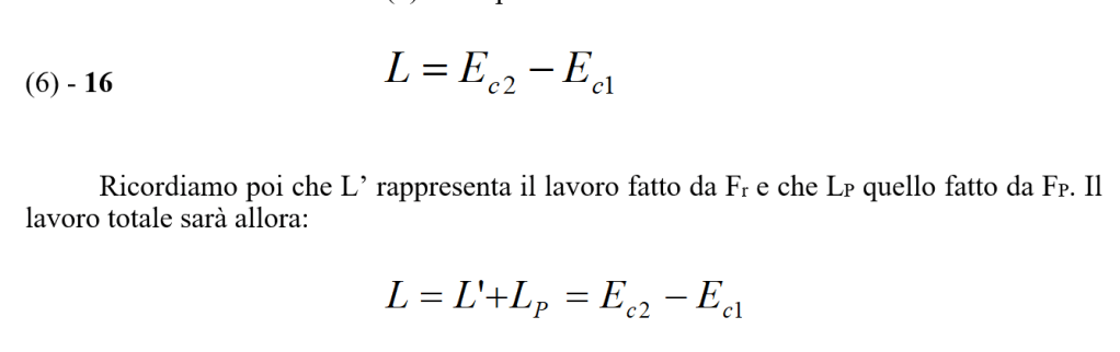 Ricordiamo ora che il lavoro totale L è uguale alla variazione dell’energia cinetica, come mostrato nella relazione (6) del capitolo 16: