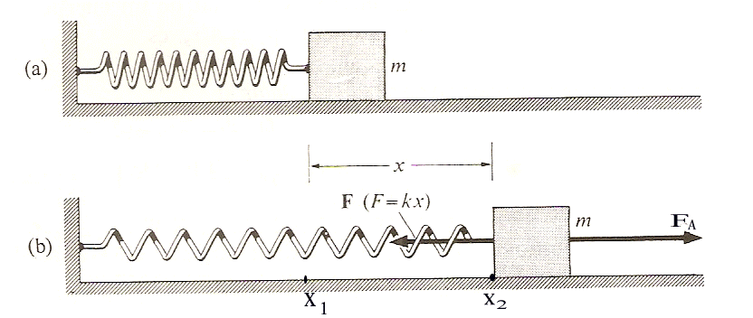 Esistono molti altri tipi di energia potenziale. Si supponga di avere una massa attaccata ad una molla nella sua posizione di equilibrio. Se si allunga la molla applicando una forza uguale a quella esercitata dalla molla (dopo avere impresso alla massa una lieve spinta), la molla esegue un lavoro negativo uguale in valore assoluto a quello eseguito dalla forza applicata, e l’energia cinetica non varia. Nella posizione allungata, la molla ha un’energia potenziale uguale al valore assoluto del lavoro (negativo) eseguito dalla molla. Quando la massa è lasciata libera, la molla esegue su di essa un lavoro positivo. Ciò aumenta l’energia cinetica della massa e diminuisce l’energia potenziale.