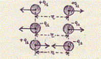 dove K è una costante che vale: K = 8,98. 109 N.m2/coulomb2. Prendiamo ora in considerazione due elettroni (che sappiamo avere ciascuno una carica qe = 1,60.10-19 coulomb ed una massa me = 9,11.10-31Kgm), supponiamo che siano ad una distanza dell’ordine di grandezza delle dimensioni atomiche (r ~ 10-10 m), applichiamo ad essi le leggi di Newton e di Coulomb e confrontiamo i valori che si ottengono per le rispettive forze. Applicando la legge di Newton si trova: